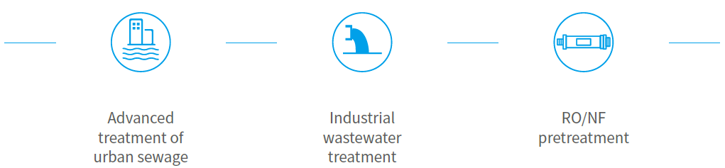 High effluent quality: Narrow membrane pore size distribution, high filtration precision, effluent turbidity less than 0.2NTU;