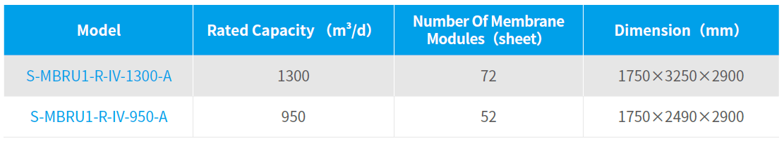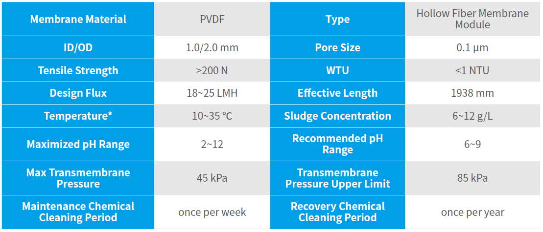 Notes: (1) *Treatment capacity with water temperature of 20℃ and sludge concentration of 8~12g/L;