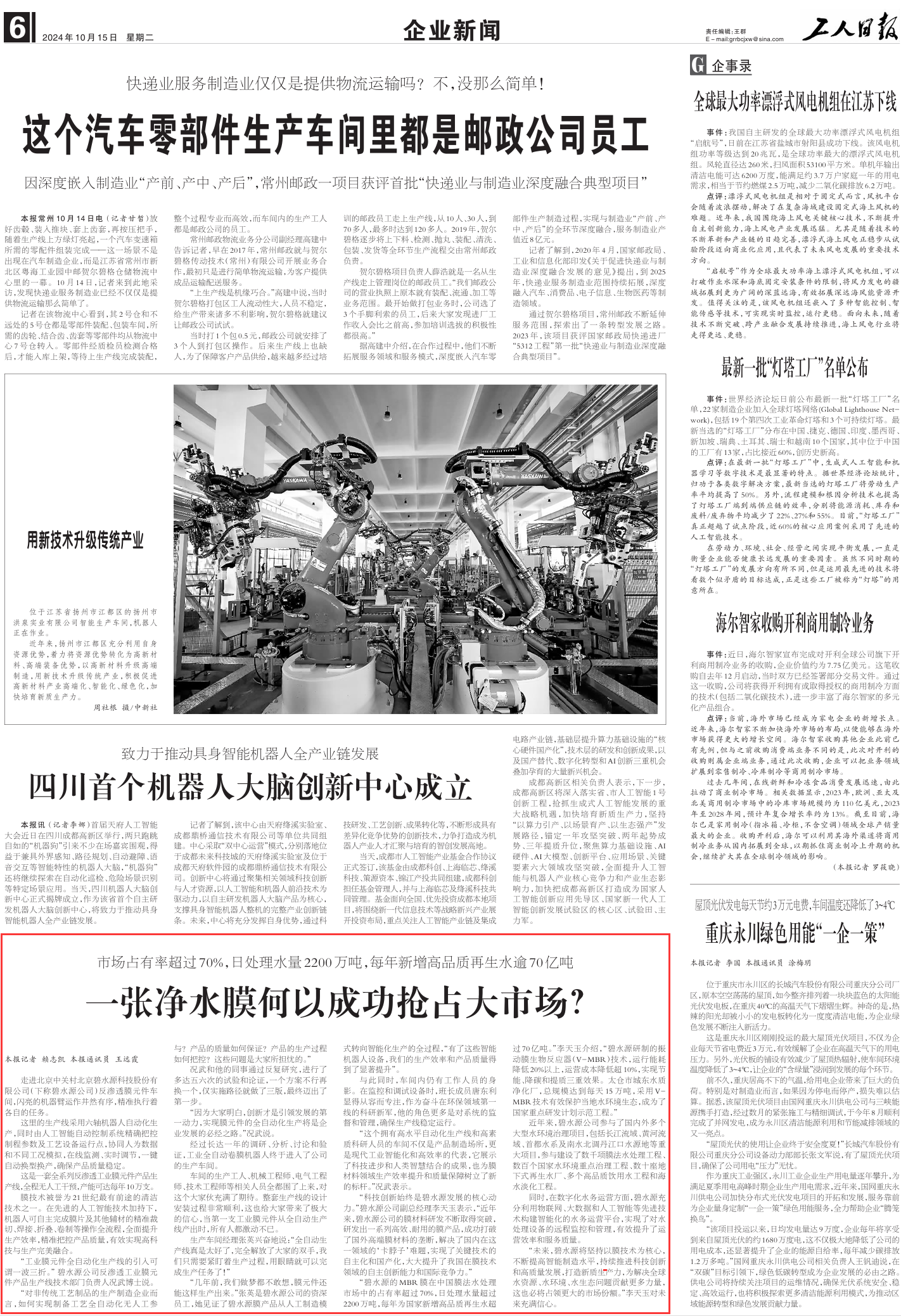“这个拥有高水平自动化生产线和高素质科研人员的车间不仅是产品制造场所,更是现代工业智能化和高效率的代表,它展示了科技进步和人类智慧结合的成果,也为膜材料领域生产效率提升和质量保障树立了新的标杆。”况武表示。